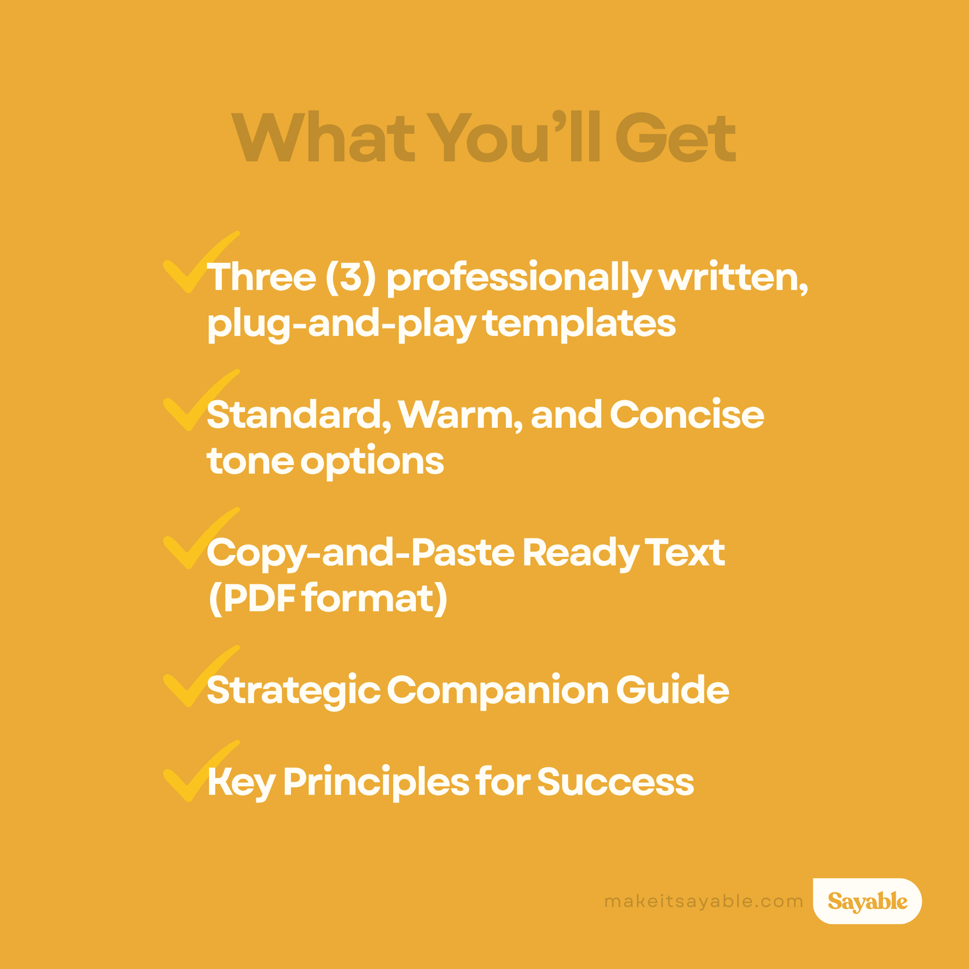 All templates and accompanying materials remain the intellectual property of Sayable. Purchasing a template grants usage rights, not ownership.
